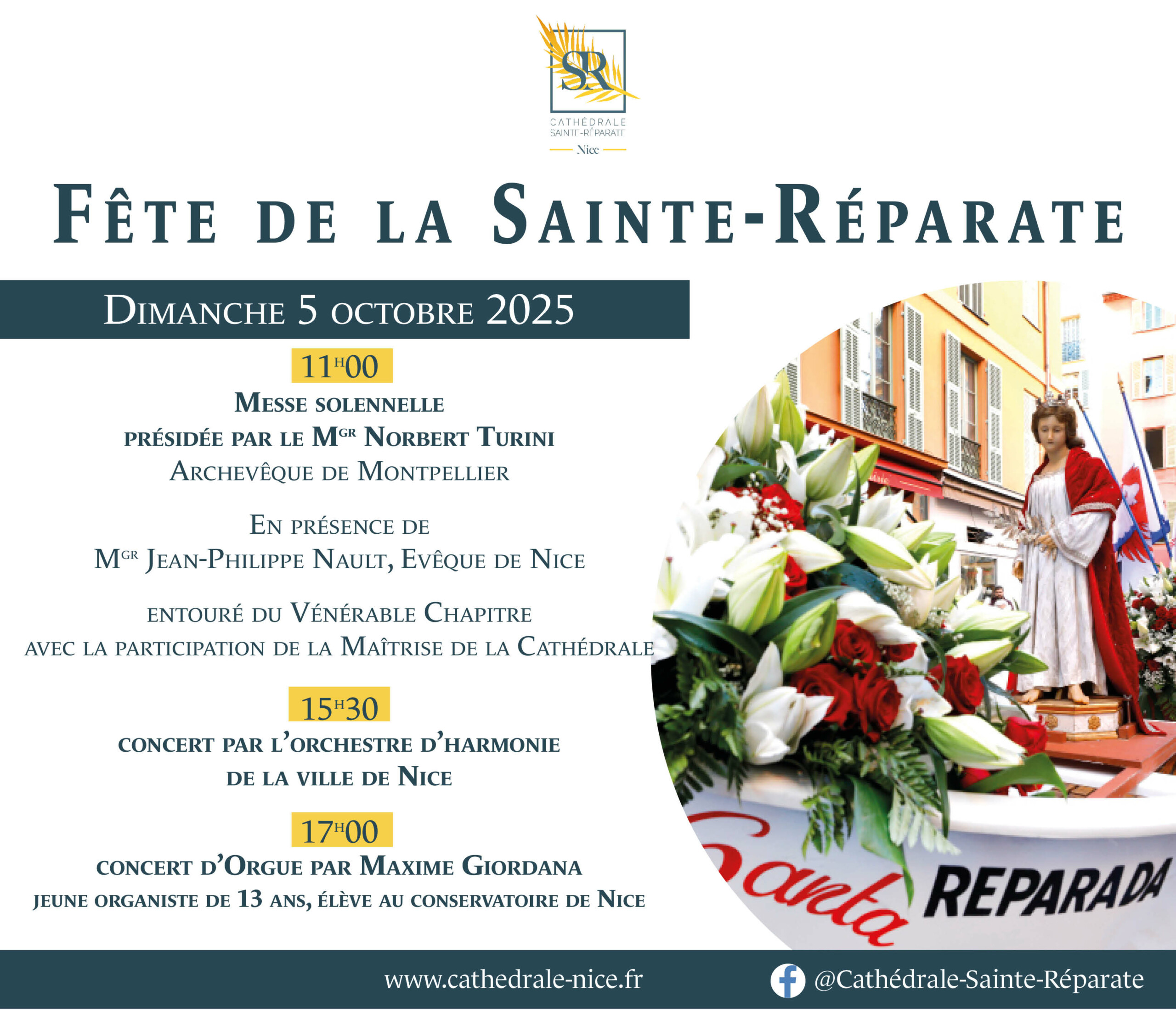 AKILUX – STE REPARATE Cathédrale Sainte-Réparate2025-10-28T09:57:03+00:000 commentaire Share This Story, Choose Your Platform! FacebookTwitterLinkedInRedditTumblrPinterestVkEmail À propos de l'auteur : Cathédrale Sainte-Réparate La cathédrale Sainte-Réparate de Nice (sous l'invocation de sainte Réparate), située dans la vieille ville (Vieux-Nice), a été construite entre 1650 et 1699, année de sa consécration. Elle est le siège du diocèse de Nice. cathedrale-nice.fr